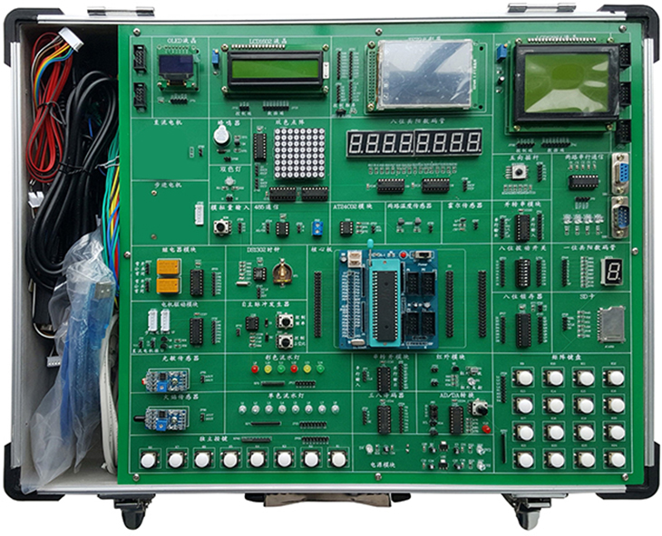 單片機實訓(xùn)箱是將MCGS工業(yè)組態(tài)軟件應(yīng)用于單片機控制系統(tǒng)中,直觀形象地展示實際自動控制工業(yè)場景。平臺主要用于學(xué)習51/52系列單片機基礎(chǔ)應(yīng)用技術(shù)和綜合應(yīng)用技術(shù),包含有單片機原理、各類控制技術(shù)、各種數(shù)據(jù)通信技術(shù)、系統(tǒng)設(shè)計技術(shù)。向用戶提供眾多外圍器件和設(shè)備接口,可使用戶快速掌握單片機原理及其實用接口技術(shù),充分了解和掌握當今單片機領(lǐng)域流行的各種外設(shè)器件應(yīng)用。