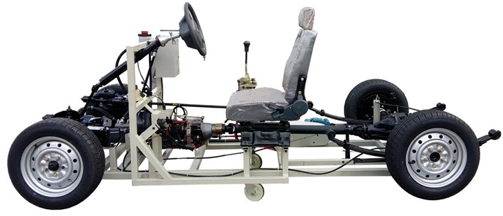 1.安裝真實(shí)的底盤各系統(tǒng)(包含前后懸掛系、轉(zhuǎn)向系、傳動系、手動變速器及掛檔機(jī)構(gòu)、制動系),充分展示汽車底盤各系統(tǒng)的組成結(jié)構(gòu)。