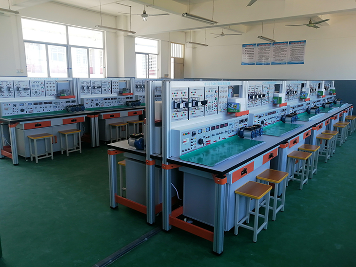 電工電子電拖PLC綜合實(shí)訓(xùn)考核裝置"教學(xué)做"電工一體化教室以電氣運(yùn)行與控制專(zhuān)業(yè)必備的電氣設(shè)備安裝、操作、維護(hù)與應(yīng)用崗位能力為重點(diǎn),以照明線(xiàn)路、電動(dòng)機(jī)繼電控制線(xiàn)路和常用機(jī)床電氣控制技能為目標(biāo),成為集教學(xué)、培訓(xùn)、服務(wù)和學(xué)生創(chuàng)新活動(dòng)于一體的高水平綜合性實(shí)踐教學(xué)基地。