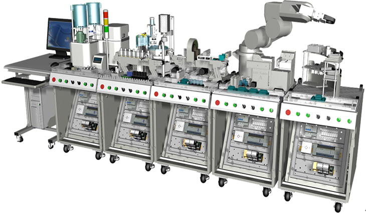 機(jī)電一體化技術(shù)實(shí)訓(xùn)設(shè)備是指機(jī)械技術(shù)、電工電子技術(shù)、微電子技術(shù)、信息技術(shù)、傳感器技術(shù)、接口技術(shù)、信號(hào)變換技術(shù)等多種技術(shù)進(jìn)行有機(jī)地結(jié)合,并綜合應(yīng)用到實(shí)際中去的技能實(shí)訓(xùn)綜合技術(shù),現(xiàn)代化的自動(dòng)生產(chǎn)設(shè)備幾乎可以說都是機(jī)電一體化的設(shè)備。自動(dòng)化生產(chǎn)線實(shí)訓(xùn)考核系統(tǒng),可以培養(yǎng)和提高學(xué)生專業(yè)綜合能力,是一種重要的實(shí)訓(xùn)設(shè)備。自動(dòng)化生產(chǎn)線實(shí)訓(xùn)系統(tǒng)、基于PLC技術(shù)的自動(dòng)化生產(chǎn)線實(shí)訓(xùn)考核系統(tǒng),可以培養(yǎng)和提高學(xué)生專業(yè)綜合能力,是一種重要的實(shí)訓(xùn)設(shè)備。自動(dòng)化生產(chǎn)線實(shí)訓(xùn)系統(tǒng)整體包括自動(dòng)供料、檢測(cè)傳輸、檢測(cè)加工、自動(dòng)裝配、自動(dòng)分揀等工序,很好的將機(jī)械技術(shù)、微電子技術(shù)、電工電子技術(shù)、傳感測(cè)試技術(shù)、接口技術(shù)、信息變換技術(shù)、網(wǎng).絡(luò)通信技術(shù)等多種技術(shù)有機(jī)地結(jié)合。該系統(tǒng)中自動(dòng)分揀站的設(shè)計(jì)過程,包括系統(tǒng)硬件設(shè)計(jì)、PLC控制設(shè)計(jì)和程序設(shè)計(jì)方法,F(xiàn)代化的自動(dòng)生產(chǎn)設(shè)備的最大特點(diǎn)是它的綜合性和系統(tǒng)性,在這里,機(jī)械技術(shù)、微電子技術(shù)、電工電子技術(shù)、傳感測(cè)試技術(shù)、接口技術(shù)、信息變換技術(shù)、網(wǎng)絡(luò)通信技術(shù)等多種技術(shù)有機(jī)地結(jié)合,并綜合應(yīng)用到生產(chǎn)設(shè)備中:而系統(tǒng)性指的是,生產(chǎn)線的傳感檢測(cè)、傳輸與處理、控制、執(zhí)行與驅(qū)動(dòng)等機(jī)構(gòu)在微處理單元的控制下協(xié)調(diào)有序地工作,有機(jī)地融合在一起?删幊绦蚩刂破(PLC)以其高抗干擾能力、高可靠性、高性能價(jià)格比且編程簡(jiǎn)單而廣泛地應(yīng)用在現(xiàn)代化的自動(dòng)生產(chǎn)設(shè)備中,擔(dān)負(fù)著生產(chǎn)線的大腦一微 處理單元的角色。因此,培養(yǎng)掌握機(jī)電一體化技術(shù),掌握PLC技術(shù)及PLC網(wǎng)絡(luò)技術(shù)的技術(shù)人材是當(dāng)務(wù)之急。而一套基于PLC技術(shù)的自動(dòng)化生產(chǎn)線實(shí)訓(xùn)考核設(shè)備可以模擬一個(gè)與實(shí)際生產(chǎn)情況+分接近的控制過程,使學(xué)習(xí)者得到一個(gè)非常接近于實(shí)際的教學(xué)設(shè)備環(huán)境,從而縮短了理論教學(xué)與實(shí)際應(yīng)用之間的距離。自動(dòng)分揀站需完成對(duì)上一單元送來的已加工、裝配的工件進(jìn)行分揀。使不同顏色的工件從不同的料槽分流的功能。當(dāng)輸送站送來工件放到傳送帶上并為入料口光電傳感器檢測(cè)到時(shí),即啟動(dòng)變頻器,工件開始送入分揀區(qū)進(jìn)行分揀。上海碩博弘揚(yáng)大國(guó)工匠精神, 發(fā)展職業(yè)教育,應(yīng)用教學(xué)設(shè)備,為企業(yè)培養(yǎng)高技能人才,而專業(yè)生產(chǎn):光機(jī)電一體化(自動(dòng)生產(chǎn)線)實(shí)訓(xùn)裝置、灌裝自動(dòng)化生產(chǎn)線實(shí)訓(xùn)裝置、工業(yè)自動(dòng)生產(chǎn)線實(shí)訓(xùn)裝置 、工業(yè)控制模擬實(shí)訓(xùn)裝置 、機(jī)電一體化組合實(shí)訓(xùn)平臺(tái) 、機(jī)電一體化綜合實(shí)訓(xùn)考核裝置、自動(dòng)化生產(chǎn)安裝與調(diào)試實(shí)訓(xùn)裝置 、光機(jī)電一體化高速分揀實(shí)訓(xùn)系統(tǒng) 、典型機(jī)電設(shè)備安裝與控制實(shí)訓(xùn)裝置、模塊式柔性自動(dòng)環(huán)形生產(chǎn)線實(shí)驗(yàn)系統(tǒng)(帶機(jī)器人工程型)、立體停車庫實(shí)物教學(xué)實(shí)驗(yàn)裝置、機(jī)電一體化柔性生產(chǎn)線加工實(shí)訓(xùn)系統(tǒng)(5站)、網(wǎng)絡(luò)型模塊式柔性自動(dòng)化生產(chǎn)線實(shí)驗(yàn)系統(tǒng)、模塊式柔性自動(dòng)環(huán)形生產(chǎn)線實(shí)驗(yàn)系統(tǒng)(工程型)、柔性生產(chǎn)制造實(shí)驗(yàn)系統(tǒng)(工程型)、現(xiàn)代物流倉儲(chǔ)自動(dòng)化實(shí)驗(yàn)系統(tǒng)、運(yùn)動(dòng)實(shí)訓(xùn)裝置、循環(huán)搬運(yùn)自動(dòng)控制實(shí)訓(xùn)裝置、平面雙軸運(yùn)行控制實(shí)訓(xùn)裝置、工業(yè)機(jī)械手實(shí)訓(xùn)裝置、物料分揀實(shí)訓(xùn)裝置、機(jī)械手實(shí)訓(xùn)裝置 、立體倉庫實(shí)訓(xùn)裝置、十字路口交通燈實(shí)訓(xùn)系統(tǒng)、機(jī)電液氣一體化綜合實(shí)訓(xùn)裝置、光機(jī)電一體化高速分揀實(shí)訓(xùn)系統(tǒng)、步進(jìn)伺服控制綜合實(shí)訓(xùn)平臺(tái)、光機(jī)電氣一體化控制實(shí)訓(xùn)系統(tǒng)、 光機(jī)電一體化綜合實(shí)訓(xùn)考核裝置、光機(jī)電一體化實(shí)訓(xùn)考核裝置、光機(jī)電一體化實(shí)訓(xùn)考核裝置、光機(jī)電氣一體化控制實(shí)訓(xùn)系統(tǒng)、自動(dòng)生產(chǎn)線拆裝與調(diào)試實(shí)訓(xùn)裝置、柔性自動(dòng)化生產(chǎn)線實(shí)訓(xùn)系統(tǒng)。