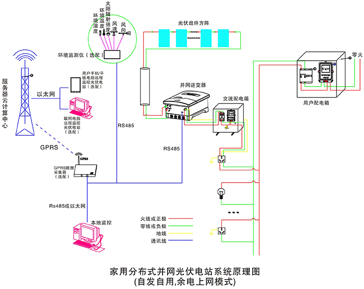 在晴朗的白天,裝在屋頂上的光伏組件發(fā)出的直流電經(jīng)過并網(wǎng)逆變器逆變成與電網(wǎng)同頻率同相位的單相交流電給負(fù)載進(jìn)行供電,在夜晚或陰雨天等太陽光照不足的情況下,系統(tǒng)處于待機(jī)狀態(tài),負(fù)載用電全部來自電網(wǎng)。您可以通過系統(tǒng)監(jiān)控軟件來實(shí)時(shí)查看系統(tǒng)的運(yùn)行狀態(tài)和故障信息,或者是選配遠(yuǎn)程通訊數(shù)據(jù)采集器,將系統(tǒng)工作數(shù)據(jù)通過GPRS或以太網(wǎng),傳輸?shù)侥氖謾C(jī)、平板電腦或任意一臺(tái)聯(lián)網(wǎng)的電腦,以便于您遠(yuǎn)程實(shí)時(shí)掌控電站的信息。