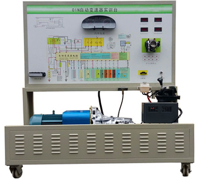 該設(shè)備采用電控自動變速器總成為基礎(chǔ),可調(diào)速三相異步電動機(jī)做動力源,對自動變速器進(jìn)行檔位顯示、空檔起動、前進(jìn)檔及倒檔運(yùn)行等工況實(shí)踐操作。真實(shí)展示電控自動變速器組成結(jié)構(gòu)和工作過程。