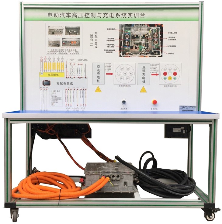 國(guó)標(biāo)充電槍與充電座、(北汽EV160純電動(dòng)汽車)高壓配電箱(帶各類高壓繼電器)、漏電傳感器模塊、絕緣傳感器模塊、安全維修塞模塊、漏電模擬操作單元、高壓安全系統(tǒng)操作單元、操作控制臺(tái)、訓(xùn)練控制按鈕、直流接觸器(包含充電繼電器、總正繼電器、總負(fù)繼電器、預(yù)充繼電器)、一體化全鋁合金型材搭建的移動(dòng)臺(tái)架(1500×700×1700mm 帶自鎖腳輪裝置,帶安裝檢測(cè)端子的原理面板,面板1448×940mm)、設(shè)備操作說明書。