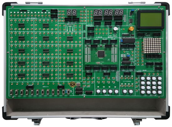 數(shù)字電路、EDA技術(shù)實(shí)驗(yàn)設(shè)計(jì)由鋁木合金箱體、開關(guān)電源、常用信號源、常用模數(shù)接口、人機(jī)接口、接插式FPGA下載板和實(shí)驗(yàn)電路區(qū)等組成。其中信號源由高性能單片機(jī)產(chǎn)生,穩(wěn)定可靠。全部的實(shí)驗(yàn)用信號線的連接采用高可靠杜邦線和單根2號插針線,避免接觸不良現(xiàn)象反生。擴(kuò)展設(shè)計(jì)的CPLD/FPGA開發(fā)板為用戶開展創(chuàng)新設(shè)計(jì)提供了良好的硬件平臺。本實(shí)驗(yàn)箱適用于本?圃盒K须婎惡头请婎悓I(yè)《數(shù)字電子技術(shù)》、《數(shù)字系統(tǒng)設(shè)計(jì)》、《EDA技術(shù)設(shè)計(jì)》等課程的實(shí)驗(yàn)、實(shí)訓(xùn)和創(chuàng)新設(shè)計(jì),有出版社出版的配套教材。