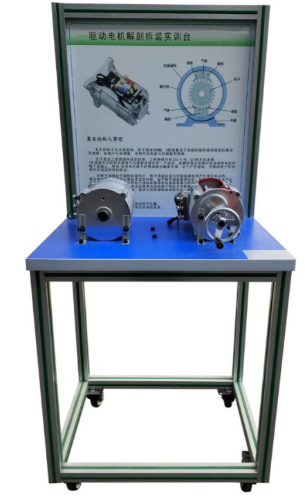 驅(qū)動(dòng)電機(jī)(1只解剖,1只完好總成),手動(dòng)搖把,可移動(dòng)臺(tái)架(帶原理面板)。
