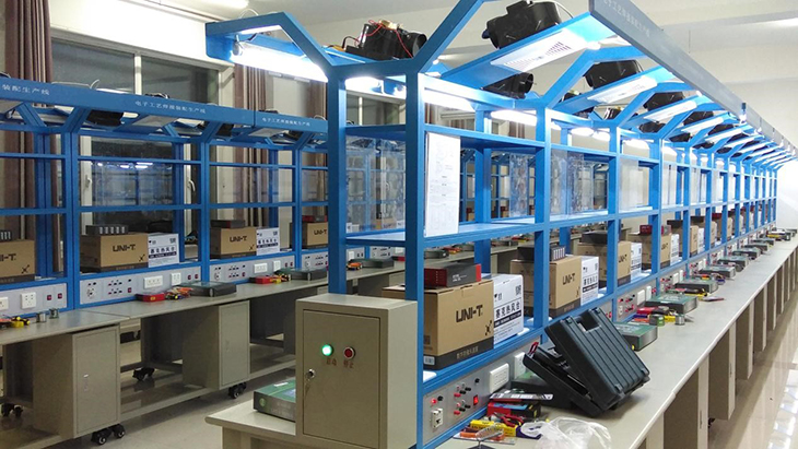 電子工藝實(shí)習(xí)室是供學(xué)生焊接練習(xí)、電子產(chǎn)品組裝調(diào)試操作的實(shí)驗(yàn)室,學(xué)生進(jìn)行焊接操作。配備的儀器設(shè)備主要有直流穩(wěn)壓電源、示波器、萬(wàn)用表、工具箱等。為了改善實(shí)習(xí)室的空氣環(huán)境衛(wèi)生,還專門配備了抽風(fēng)系統(tǒng)。開設(shè)的課程有《電子工藝實(shí)習(xí)》、《電工實(shí)習(xí)》,包括電路元件的選配、電子產(chǎn)品的安裝、焊接和性能測(cè)試等環(huán)節(jié)。電子工藝實(shí)驗(yàn)實(shí)訓(xùn)室設(shè)備主要面向汽車、機(jī)械、電信、電氣、計(jì)算機(jī)、經(jīng)濟(jì)、管理等學(xué)院的學(xué)生,培養(yǎng)學(xué)生的動(dòng)手實(shí)踐能力、分析問(wèn)題和解決問(wèn)題的能力以及創(chuàng)新精神。