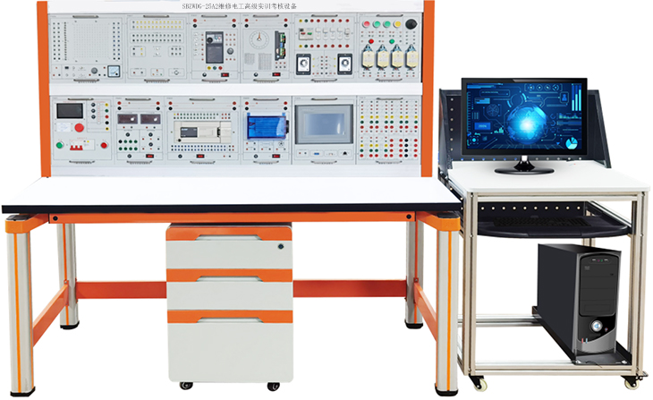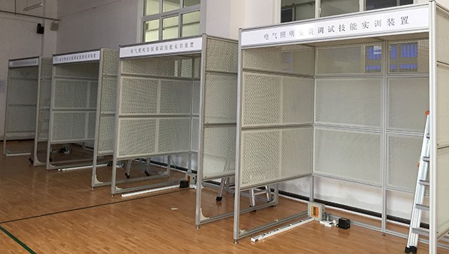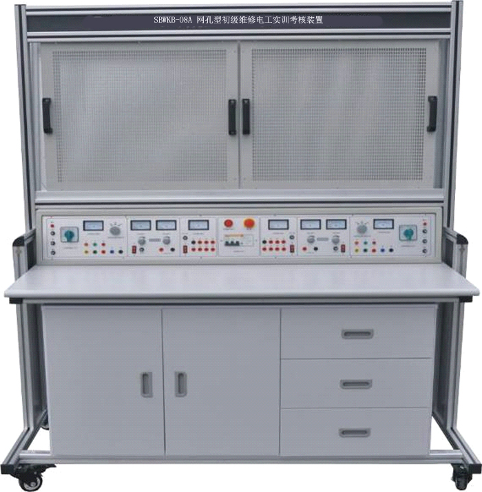 電氣安裝與維修實訓考核裝置是根據(jù)工廠電氣安裝和室內(nèi)電氣安裝等維修 電工和電氣安裝工實訓鑒定要求開發(fā)的一種通用實訓平臺。 適合于各類職業(yè)院校 和技工學校維修電工、 電氣安裝工、水電工等有電氣實訓要求的相關專業(yè)的作為 公共實訓平臺使用。 采用鋼制網(wǎng)孔板和鋼制專用型材組接而成,安裝有自鎖式腳輪,方便移動和使用。裝 置表面噴塑,色彩穩(wěn)重氣派。電氣安裝與維修實訓裝置設計高度以人站在一級人字梯即可方便操作的高度,既安 全又能使使用者感受到施工現(xiàn)場環(huán)境。 橫向、 叢向?qū)挾群线m, 可以模擬現(xiàn)場線路的轉(zhuǎn)向布置。