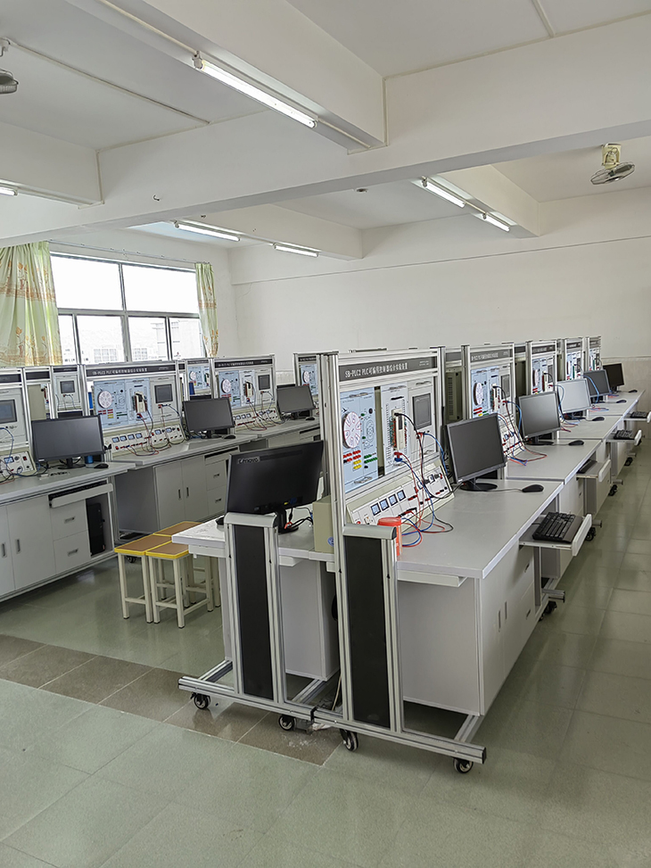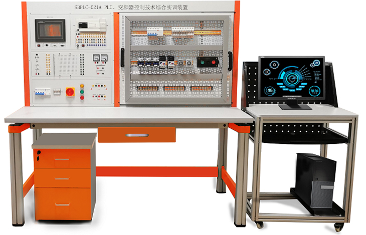可編程控制器教學(xué)實訓(xùn)平臺,可編程控制器實驗平臺,其特征在于,包括實訓(xùn)臺,電源模塊,兩個PLC控制器及實訓(xùn)模塊;其中一個PLC控制器與實訓(xùn)模塊電連接,實訓(xùn)模塊包括步進電機控制系統(tǒng),伺服電機控制系統(tǒng)及氣壓驅(qū)動系統(tǒng);兩個PLC控制器分別為三菱PLC控制器及西門子PLC控制器.本實訓(xùn)平臺用于PLC控制器的學(xué)習(xí)實訓(xùn),通過對步進電機控制系統(tǒng),伺服電機控制系統(tǒng),氣壓驅(qū)動系統(tǒng)的使用方法和技巧的學(xué)習(xí),使學(xué)員能夠系統(tǒng)掌握PLC控制器原理和使用方法,與現(xiàn)在工業(yè)生產(chǎn)緊密聯(lián)系,且通過切換實訓(xùn)模塊與PLC控制器的接線即可實現(xiàn)對三菱PLC控制器及西門子PLC控制器的學(xué)習(xí),應(yīng)用廣泛,是中職學(xué)校機電類專業(yè)的一門核心主干課程。PLC編程知識的鞏固需要精講多練,需要搭建良好的實訓(xùn)平臺,多開設(shè)與工業(yè)實際應(yīng)用緊密結(jié)合的實訓(xùn)項目。